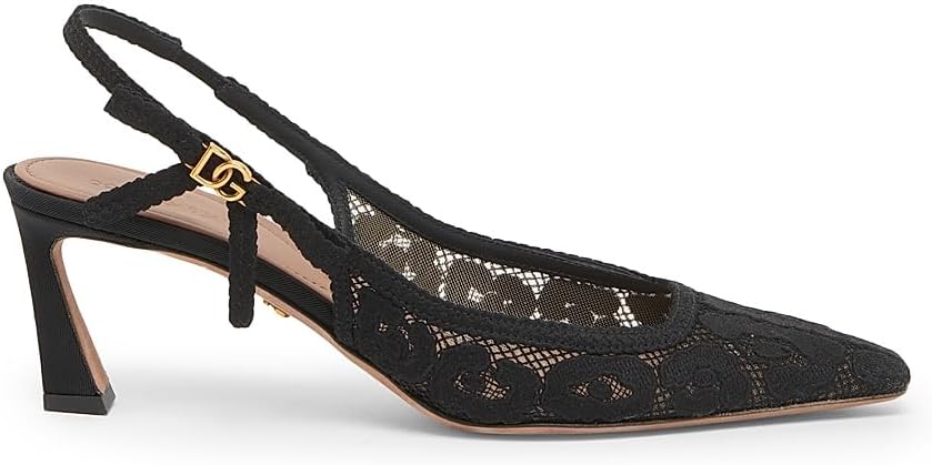 | Dolce & Gabbana Pizzo Black Lace Slingback Pumps | Lace | 100mm | Elegant lace, perfect for formal events | $1,065 (prices may vary from time to time) | Buy on Amazon |