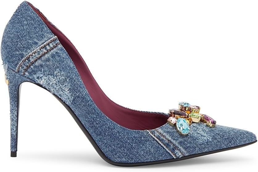 | Dolce & Gabbana Denim Jewel-Embellished Pumps | Denim | 90mm | Trendy denim with jewel embellishments | $1,145 (prices may vary from time to time) | Buy on Amazon |